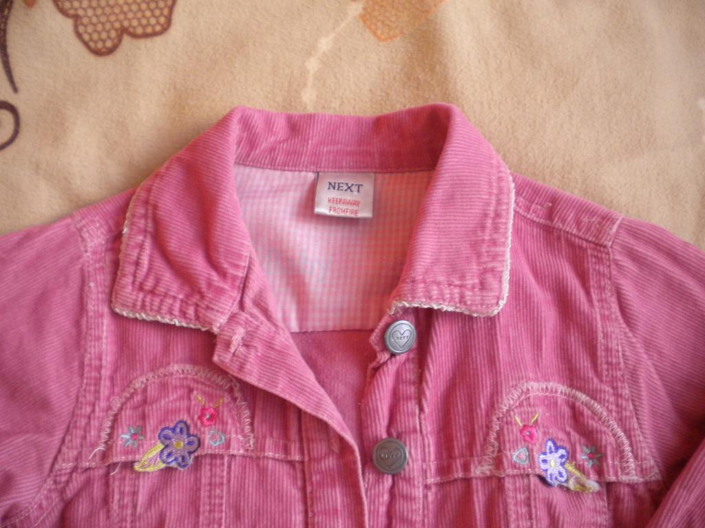 Menčestrová bundička pre dievčatko. Píšu na 2-3 roky. Vyborný nosený stav, Rozmery: dĺžka 33cm, šírka 31cm, rukáv od ramena 30cm